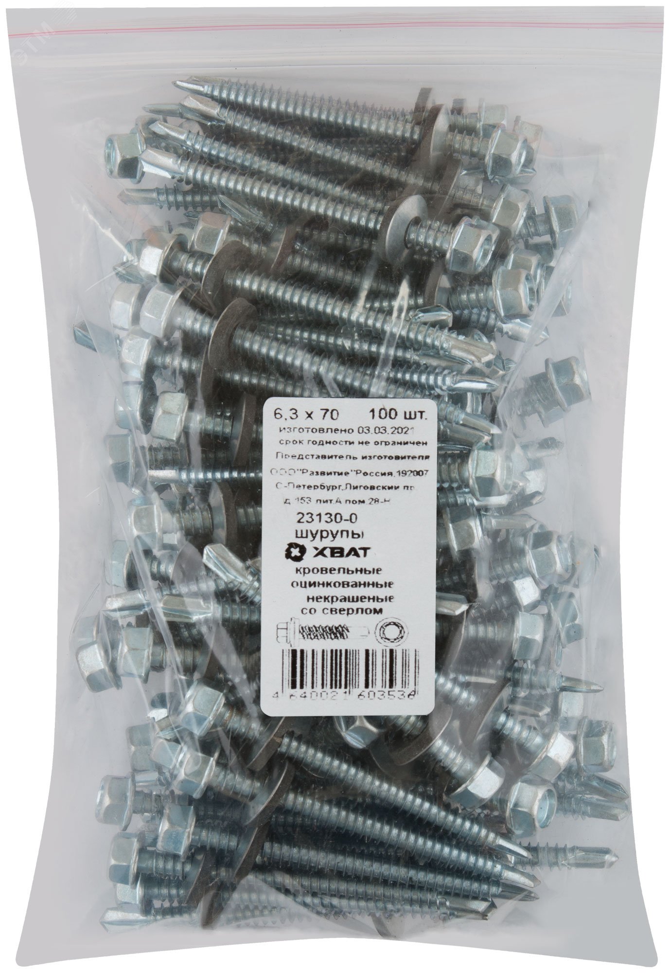 Шуруп кровельный 6,3х70 сверлоконечный (100шт)